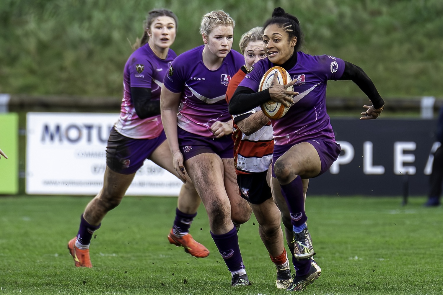 Before there were 15 African Violet shirts back on the pitch, the defending champions threatened a fifth score only for a fine Helen Nelson tackle to deny a two-on-one scoring position out wide. However, there was no stopping Brock shortly afterwards as she finished forcefully near to the posts. Sing was successful from the tee to put her side 35-14 ahead.