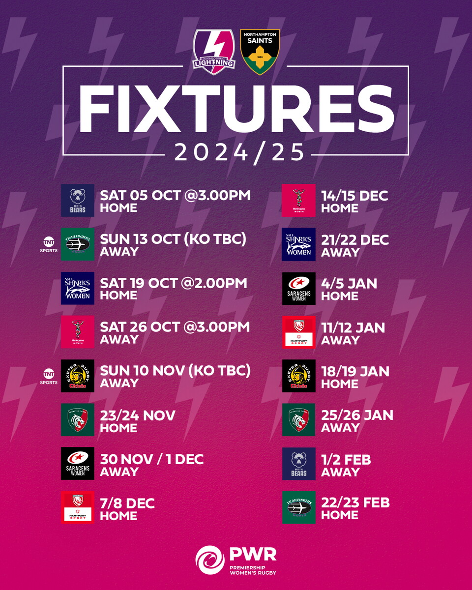 Lightning’s closest home match to Christmas is the visit of Harlequins on 14/15 December and their first fixture of 2025 is a showdown with Saracens at the Gardens on 4/5 January.