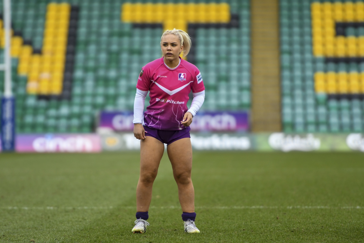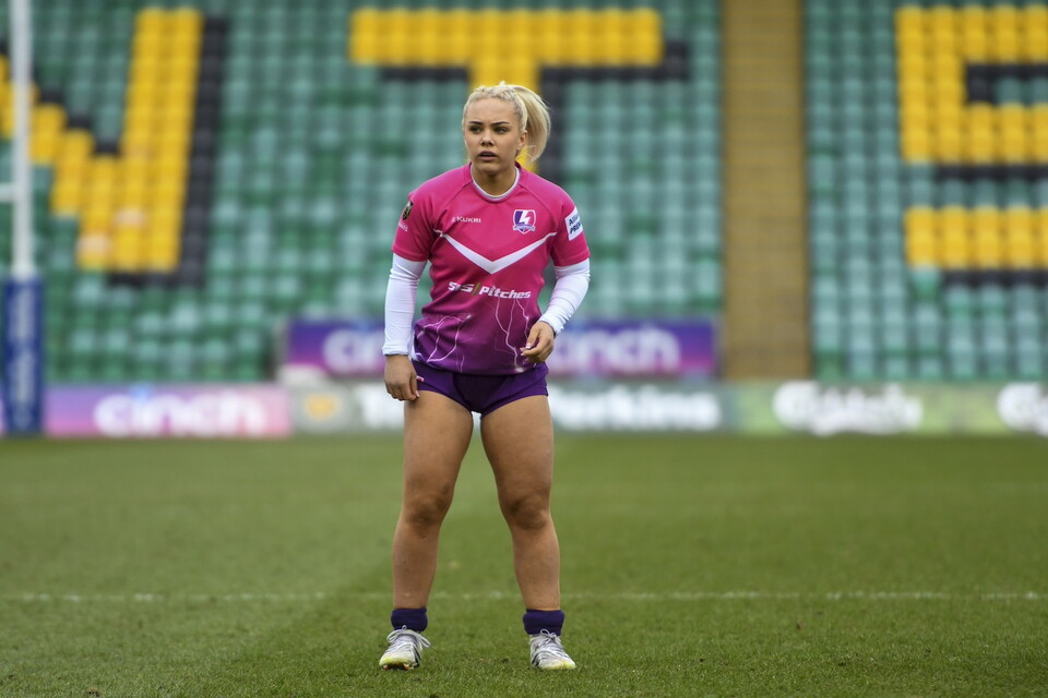 The 108-times capped England international lines up outside fellow Red Roses star Helena Rowland, who made an incredible 154 metres with ball in hand in the Bristol loss.