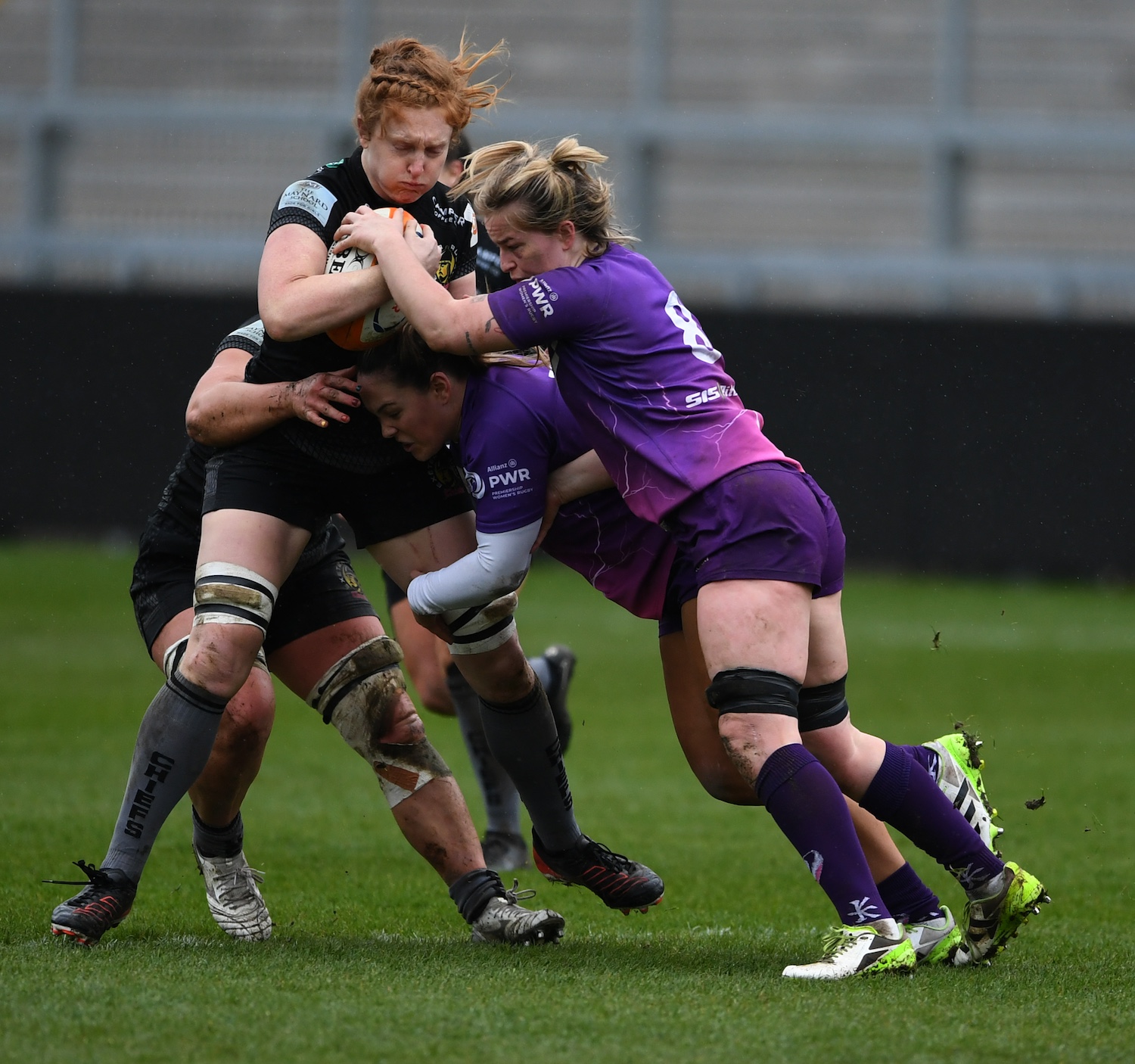 The response was swift as Ellen Scantlebury, on just her third PWR start, made good ground down the right wing, and when the ball was recycled, Scotland captain Malcolm wrestled her way over for a second try in as many games. Helena Rowland continued her excellent goalkicking form from the previous week’s win over Sale with a successful touchline conversion.