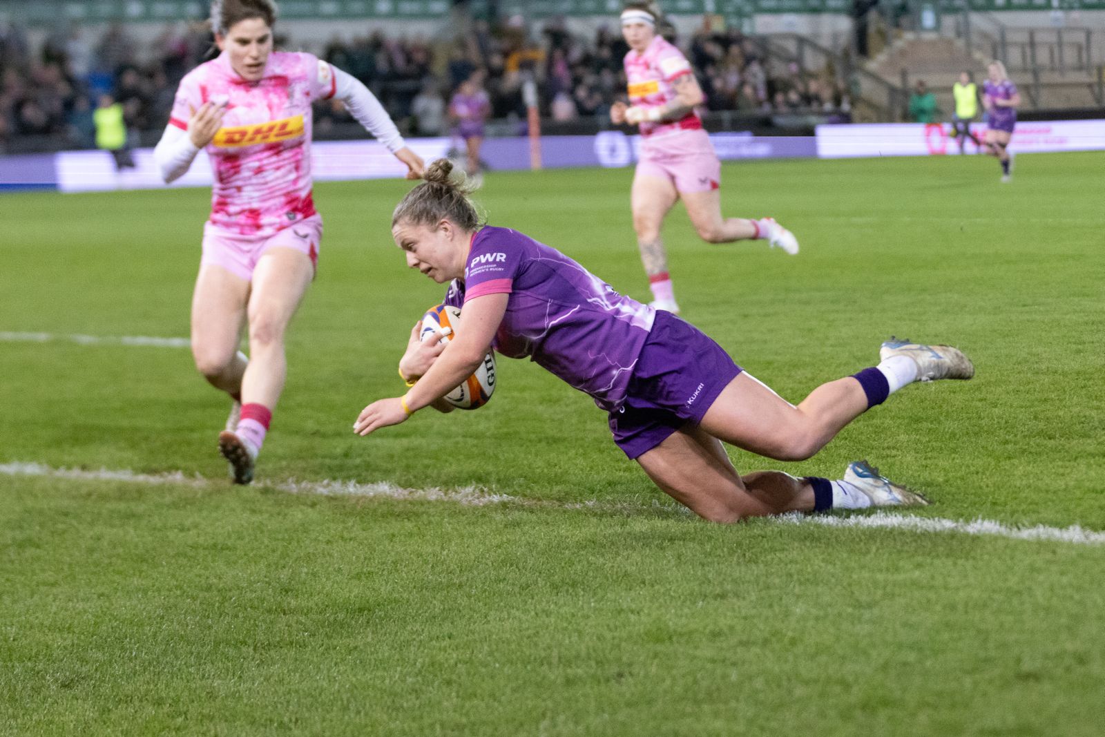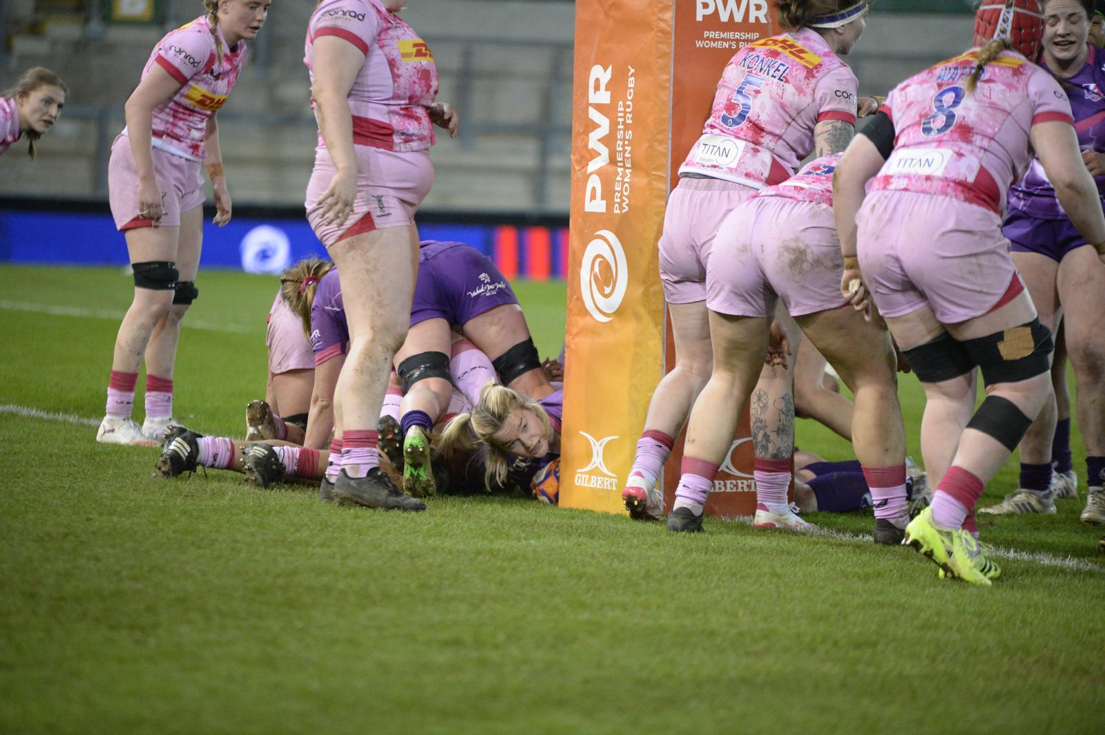 The rapid Red Roses winger struck twice in the first half after Lis Maude and Daisy Hibbert-Jones had crossed the line to open a ten-point lead at the break, with Harlequins landing two converted scores of their own.