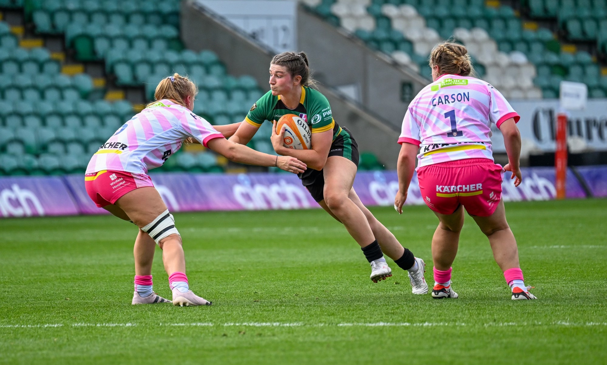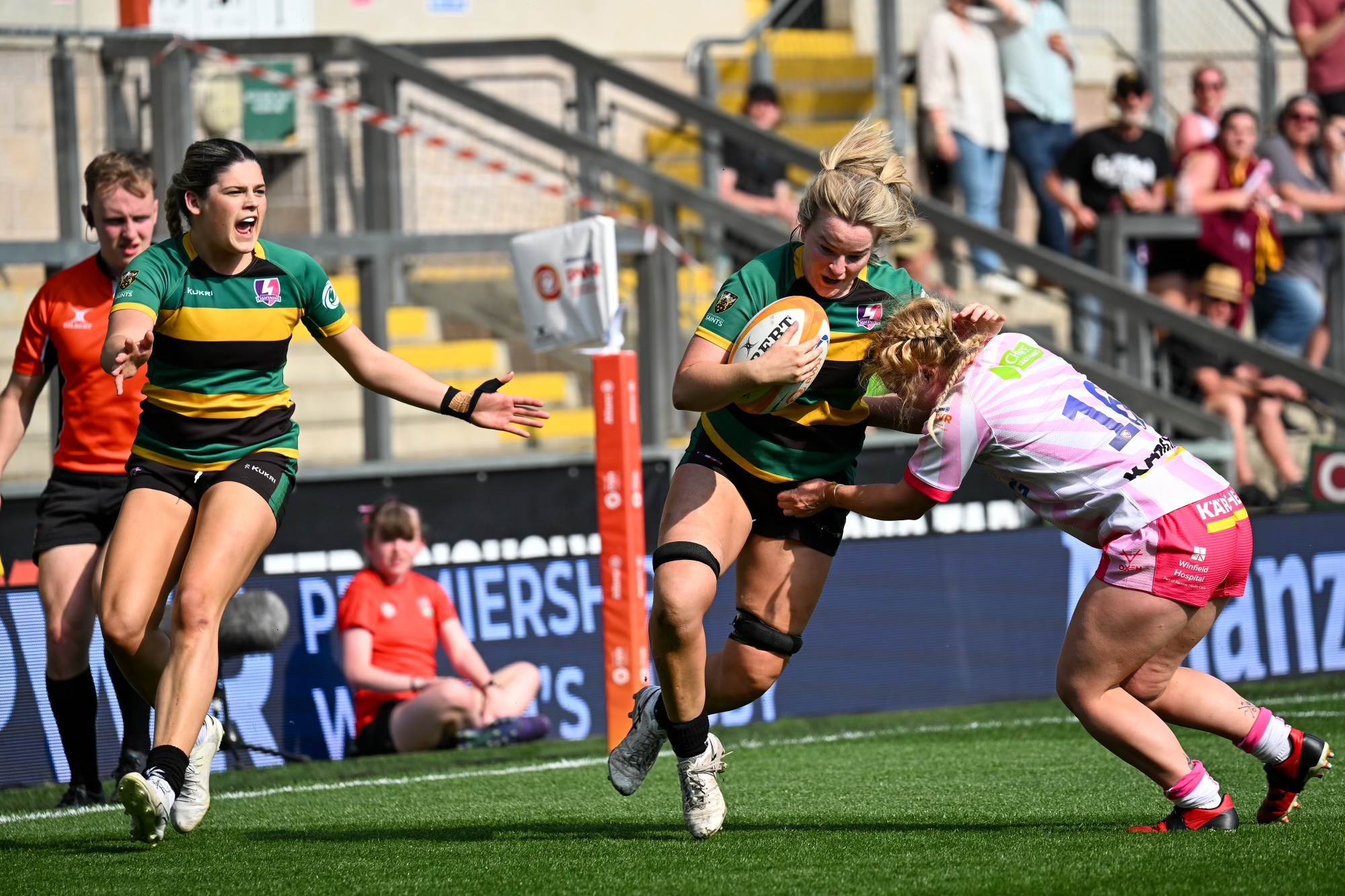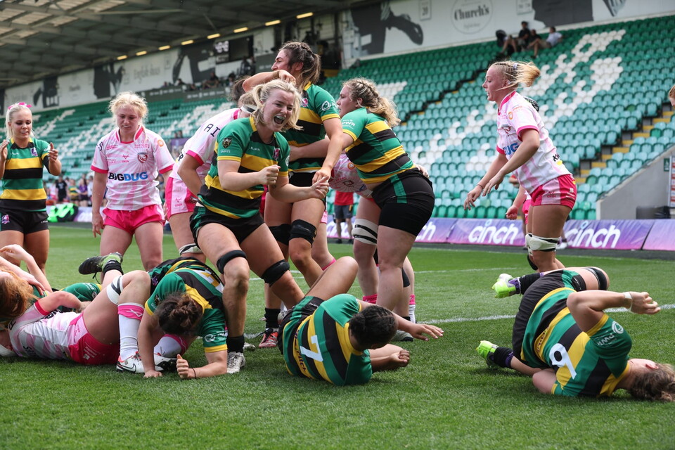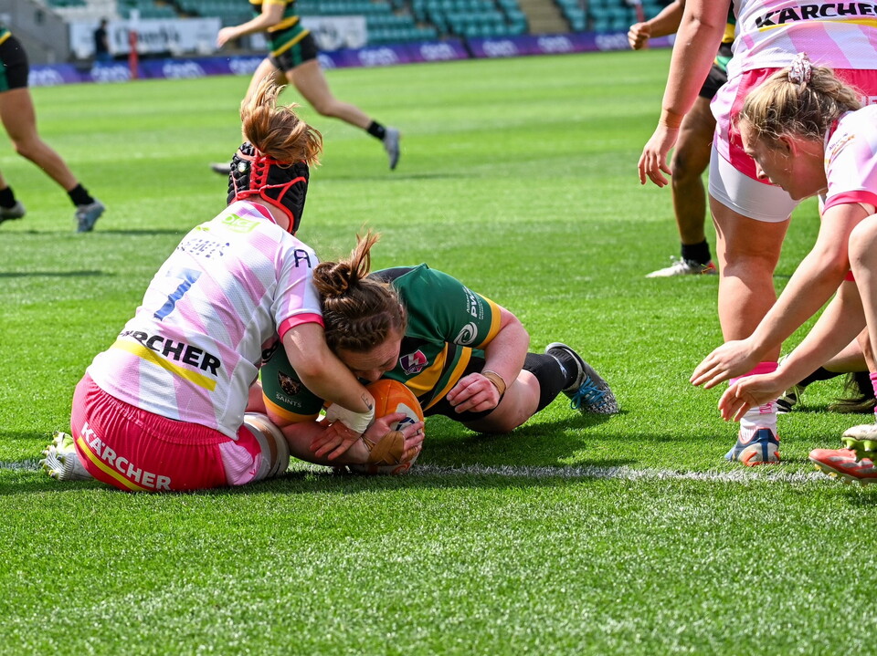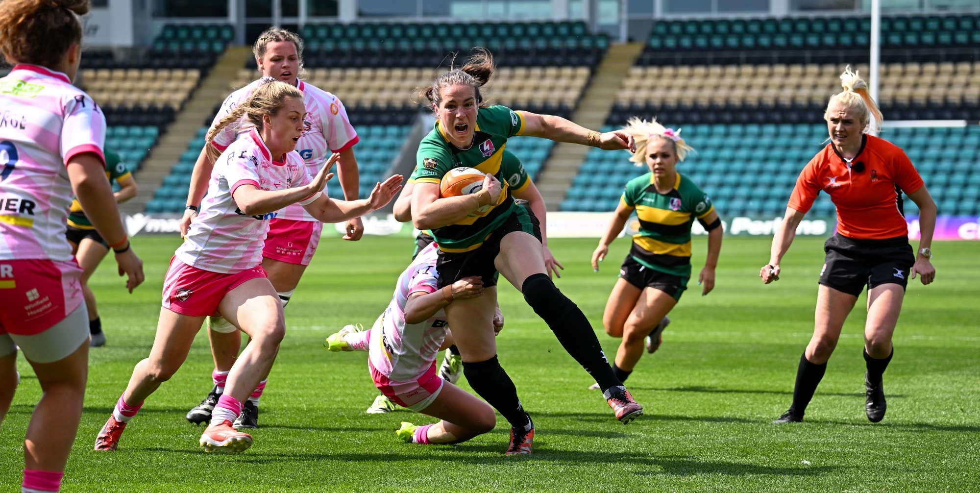 However, like that early January clash, the Cherry and Whites ran out comfortable winners as Alex Matthews, Tatayana Heard and Neve Jones all grabbed braces and Natasha Hunt, Laura Delgado and Steph Else crossed the line with Emma Sing landing eight of her nine conversions to keep the visitors to cinch Stadium at Franklin’s Gardens on course for an unbeaten season.
