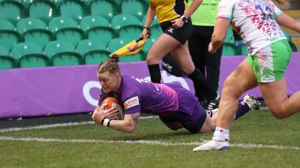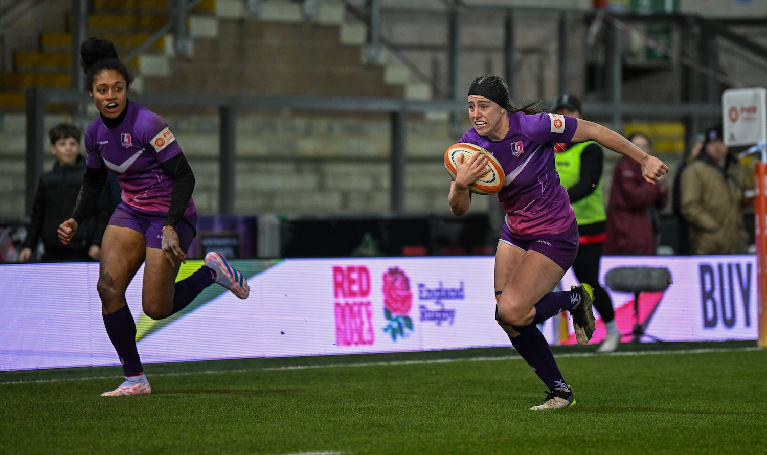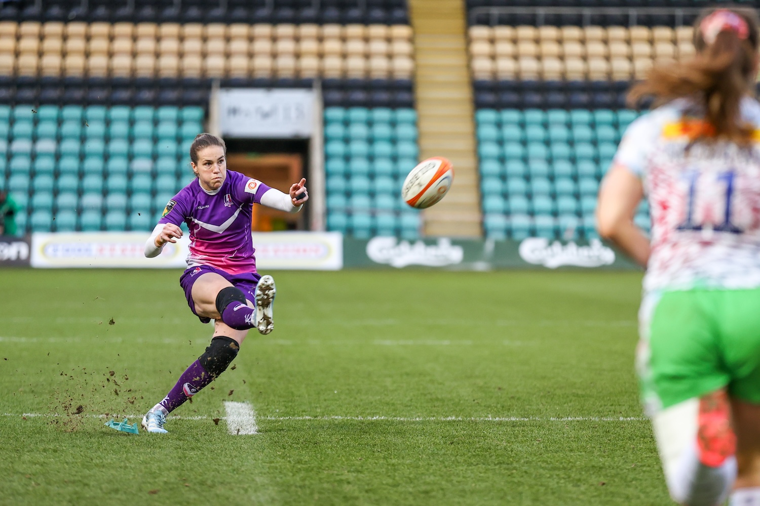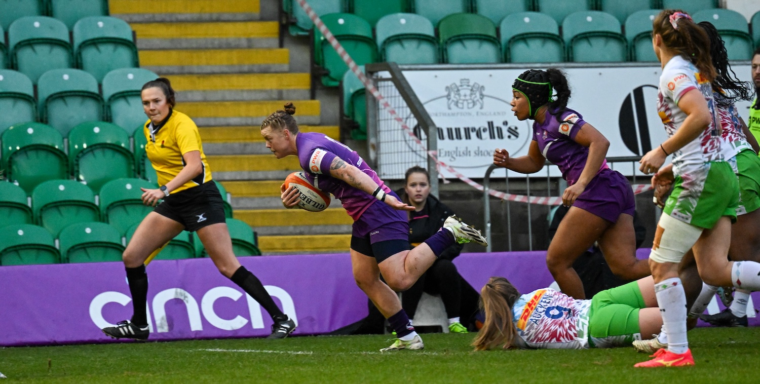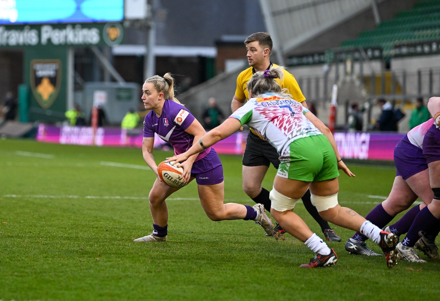 Daisy Hibbert-Jones and Alev Kelter traded tries with Connie Powell and Jade Konkel in the first half, with the visitors to cinch Stadium at Franklin’s Gardens edging the opening 40 courtesy of landing one successful conversion.