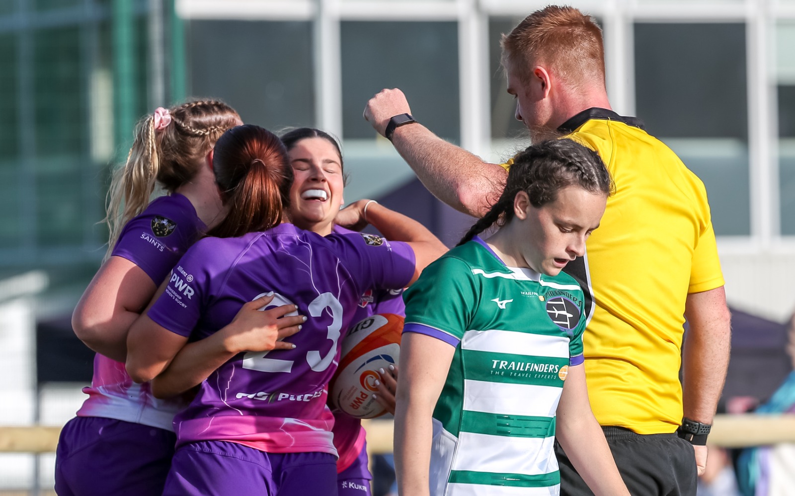 Approaching the hour mark, they get their reward. Megan Davey produced a superb diagonal kick that forced a Trailfinders knock on. From the resulting scrum inside the 22, the backs took control with Green feeding Scantlebury on a lovely wraparound move to cross over between the posts, presenting Green with a straightforward task to open a nine-point lead entering the final quarter.