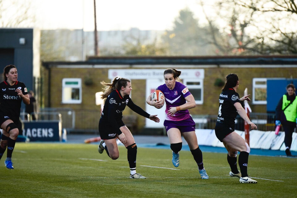 The dominance from the home side continued and if it wasn’t for a try-saving tackle from Helen Nelson to stop fullback Sarah McKenna, Sarries would have had a second score of the contest.