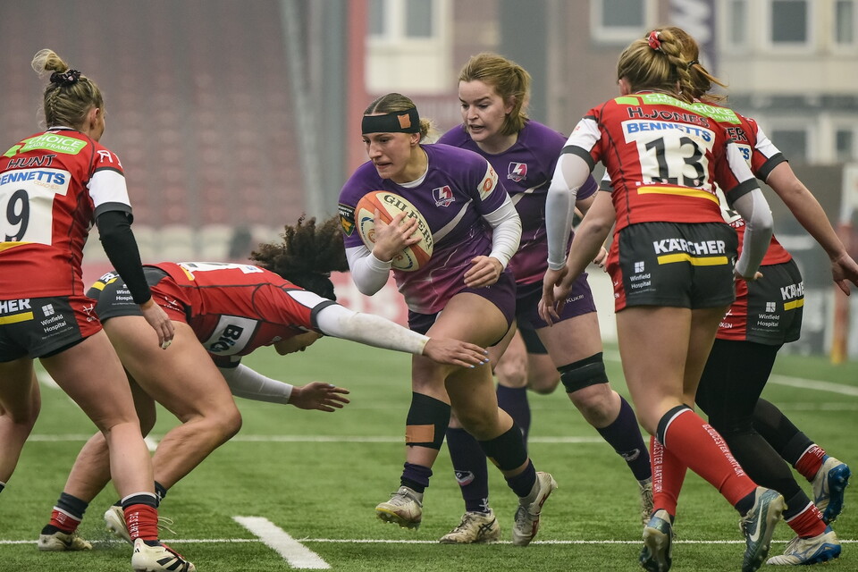 Mataitoga’s brace of tries were her first points of the season as she first showed incredible athleticism to reach over in the first half, before adding a second which saw her rip free the ball from a Gloucester carrier before burning down the right wing untouched.
